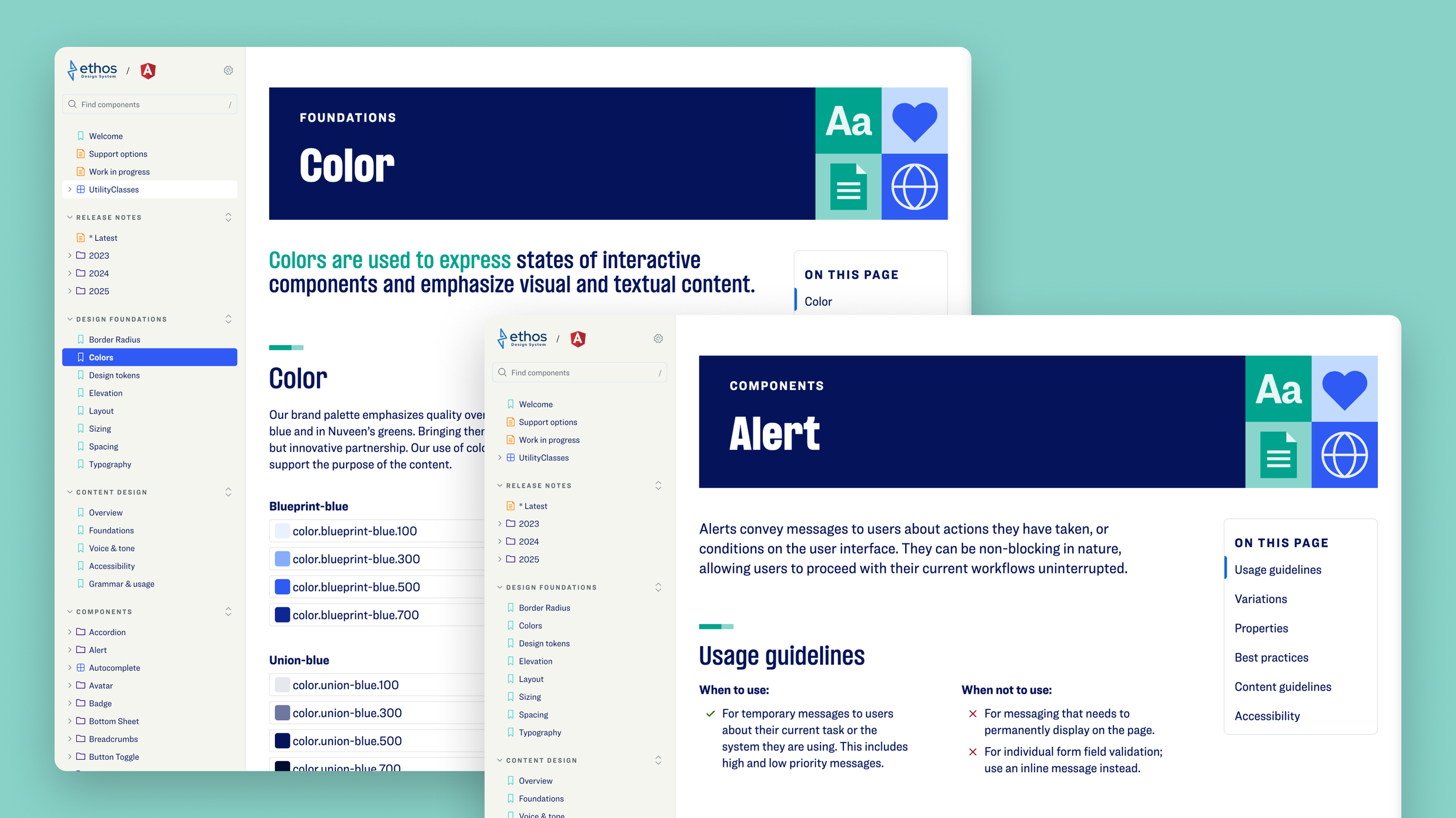 Leading a cross-functional team of designers, content writers and developers to establish, maintain and evolve component documentation and usage guidelines. My focus was on organizing this content in a way that was intuitive for all roles.